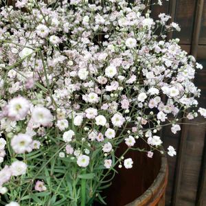骨董 手桶no.2 横から撮影したピンクのかすみ草。ほぼ満開なので昨日に続き投稿。 手桶に「廣屋」と刻印あり。どんな仕事を、、、現在はゴミ箱として活躍中。