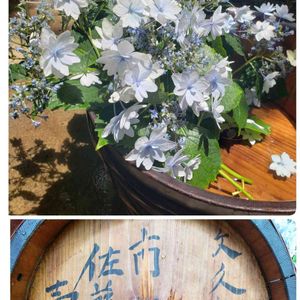 【骨董と花生活 月曜日】 隅田の花火の真花が茶色になって来たので 伐採。 桶の底裏に文久三年(西暦1863年)と購入年が記載。 佐藤四郎左衛門や升の字もあり 味噌や豆かなぁと想像。木製品や箱類はこのように墨で書かれているので明確に年が判ります。よくぞ幾度かの戦争を経て我が家に来た事に感謝感激!!!