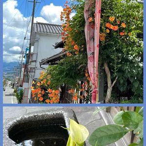 こんにちは😃 今日は朝から曇り空 少しお散歩してきました🚶♀️ 雨乞い祭りの飾りとノウゼンカズラが 綺麗なカフェまるげんさん☕️ 白いカラーも咲いていました🤍 お茶しようと思ったらお休みでした💦