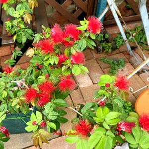 四季咲きネムノキ ポット植え 多分2年生 お天気の良い日に撮った写真 花がいっぱいだ〜 一斉に咲き出しましたぁ❣️ 自宅庭
