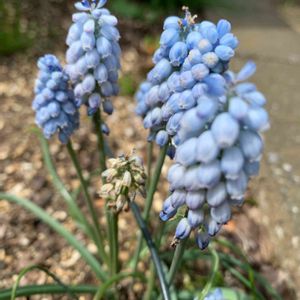一足早くクロッカスが咲いて、やっとムスカリも咲いてくれました❣️ 嬉しいなぁ〜🥰 溢れ種があちこちに落ちて増えてます。球根がまだ小さいから、お花も小さい☺️💕