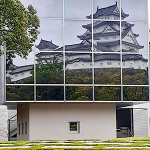 県立歴史博物館の鏡窓に映る姫路城(シロトピア記念公園) パッチワークのような 姫路城🏯