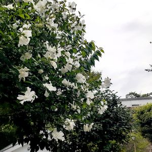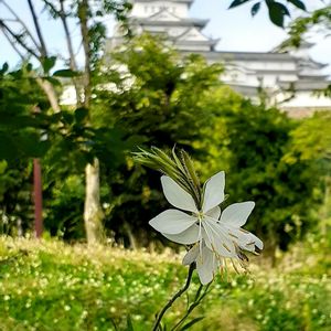 お城🏯と白い蝶 こんな所に真っ白のお花が咲いてます… 蝶に似たお花👍🤭 可愛いです…