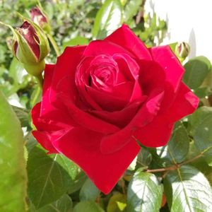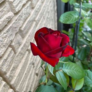 バラ イングリッドバーグマン♡ 我が家の自慢の真っ赤なバラ🌹 2番花が咲きました😊 ずいぶん高い位置で、撮影にも ひと苦労です💦