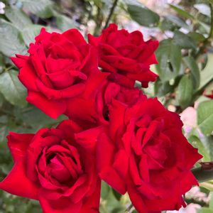 バラ イングリッドバーグマン♡ 水曜ローズショー🌹 続々と2番花が咲いています。 基本的に1本の枝に一つの花を咲かせますが 2番花はどれも4〜5輪の花が付いていて いつも以上に華やかです😊