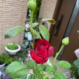 今日も夕方から急に激しい雨が降って、すぐ止みました☔️ イングリッドバーグマンの三番花🌹 私のお庭では高芯咲きの薔薇は少ないけれど、、、綺麗😍💕