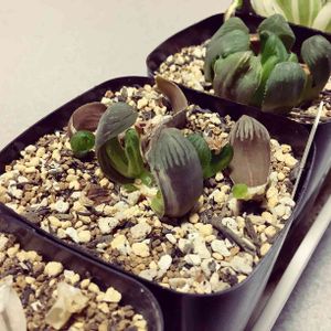 弁天錦×ドドソン紫オブツーサの葉挿しです😆 分かりにくいpicで申し訳ないのですが、斑入りの株が2つありました(● ˃̶͈̀ロ˂̶͈́)੭ꠥ⁾⁾ こういう事があるから葉挿しは楽しいですねー🤣🤣