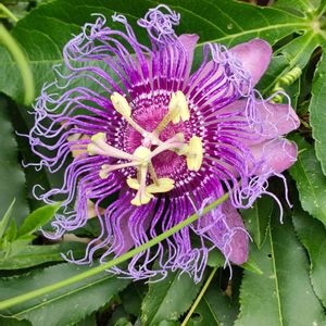 時計草の花が咲きました😍 なんて精巧な作り✨ 実はこれは2番目の花✌️ 1番目の花は葉に隠れ気味でしたので、 連投させてくださいませ。 何十年も前から惹かれていて、昨年 小さな苗お迎えして、地植えに❣️ すごく強いです❣️ みるみるつるが伸びて、冬も常緑だし、 今はお迎えした時の何十倍もの蕾が たくさん付いてます😍👍 順次咲いていくのかな😅 いっぺんに咲いたら壮観なんだけど、、 雨の1日☔️だけど、 心は☀️でがんばりましょう✊