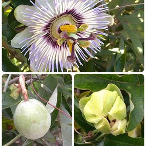時計草の花が沢山咲いていた所に行ってみました。 一つだけ実が成っていました。 これから割れて食べられるようになるのでしようか? 時計草とパッションフルーツは同じなのでしようか?
