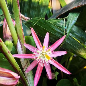 蕾がたくさんあったけど なかなか咲かず、ポチポチ一輪づつ咲いてた時計草が今朝見たら 一気に咲いていました🌸 処分で買った時白いお花と思ったら 咲いたらワインレッドのお花だった😅 とっても強くて2回の冬越し出来ました。🤗🌸🤗