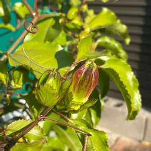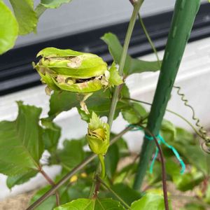 時計草の花が咲く?? これ蕾ですよね?なにせ蕾を見たことがないので😅よくわかりませんが実はともかく花が見れたら幸せ〜