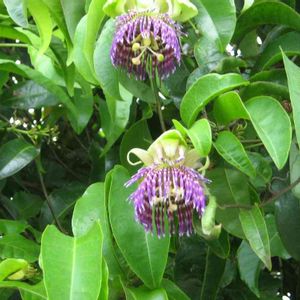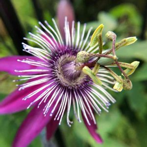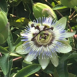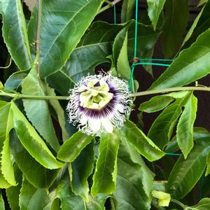 教えて下さい! これはなんのお花?でしょうか? 蕾みたいなのが・・ 自分の家なのにわかりません。 近くにはクレマチスのプリンセスダイアナとその小さいタイプのクレマチスが・・ 最近で植えたとしたら時計草のようなpicのタグなんですが、葉の形が違うので。 葉の形がなんだか面白い〜🤣 追記 調べました恐らく時計草 パッシブローラ・キトリナ