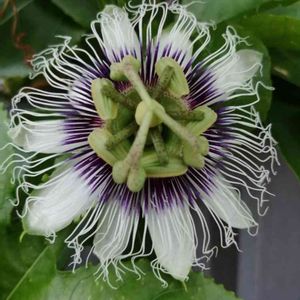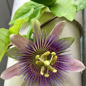 我が家で初めて咲いた時計草🕰 おばちゃんには、白い時計草ですよって聞いてたから、朝起きてこんなパープルと白の時計草でびっくりサプライズ‼️でした😆
