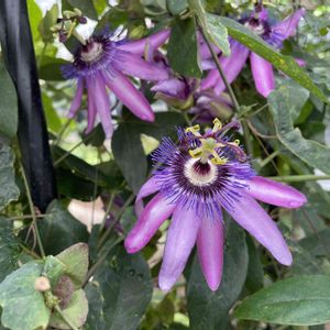 クレマチス流星 𖤐 ̖́- とっとり花回廊のクレマチス展にて 他のクレマチスに見向きもせずにづ〜と流星✨の前で止まっていたら従姉妹がこれは素敵だな〜とってもイイわ〜って!そうでしょ👍🏻ෆ ̖́- 遅めに咲く流星✨は早くは登場しなかったので昨年は見ることが出来ませんでした…なので今年は遅めに来れてよかった😊💜⋆͛ ③今日のお花 時計草 昨日はクレマチス教室に従姉妹が誘ってくれたので参加ついでに売店へ ♪見た事ない赤色❤️の時計草が一輪咲いていたけど高い所にあって上から写せなくて残念💦