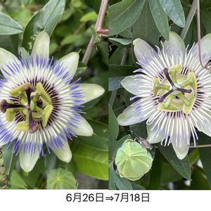またまた時計草の 今回は、重ね咲きです。 蔓が伸び放題伸びるので適当に束ねたため こんな風に咲いたのではと思います。