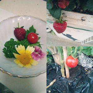 本年初終活(あ!間違った)収穫の苺と2番収穫のミニトマト!パセリとセリ!彩りに春菊の花と撫子!全て仙人が玄関前のプランターで育てています。勿論、無農薬、有機肥料、採れたて いただきま〜す(笑)