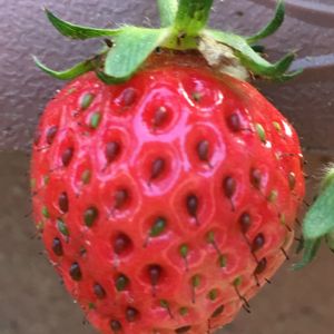 あまおう こちらのイチゴも実がなりました❣️ 買ってきた果物のイチゴ、種を取り出し実がなるよ、という話を聞き、半信半疑、種から育ててみました。 芽が出て、花が咲いて、そして大きな実をつけてくれました。