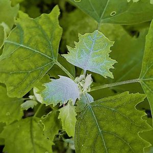 シロザ 若い葉が白く見えるのは、白い粉状の毛で覆われているためだそうです。 ヒユ科アカザ属 葉は三角状の卵形で先はとがり、縁にギザギザがある。花期は8~10月、茎先や葉のわきに穂状に緑色の花をつける。