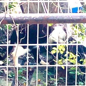 シロザ(ヒユ科)と公園の白黒猫 保護猫ボランティアの方が 猫さんたちにごはんを配っている柵の向こう側で ごはんそっちのけで夢中でガサゴソしてました 猫は自由で良いですね〜💕