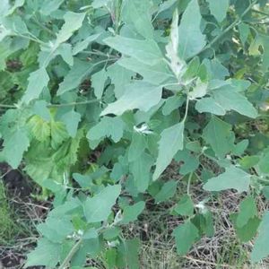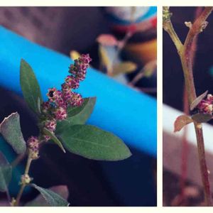 シロザ、 こんな感じ😄❤️ 赤いツブツブは実。 その実から覗く黒いのが種。