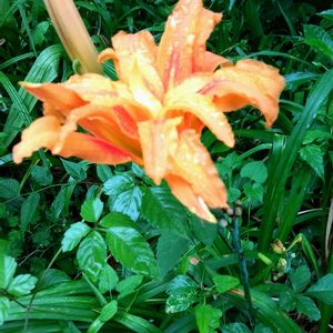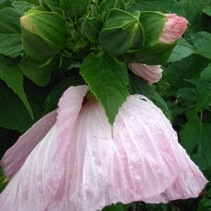 おはようございます🐦 ポンチョ着て朝散歩🐾 大きなお花が咲いているのに雨でうなだれています☔ 晴れた日にまた会いに来ますね💕