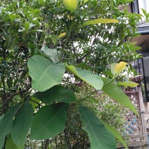 田舎の道の駅に売っていた朴葉。 調べたら、半日陰が好きだと書いてあるから、 鉢ごと、金木犀の木の下におきました。 毎年、大きな葉を二、三枚広げてくるので、 そこがいいのね。😄💞と、置きっぱなしにしたら、鉢の底穴から、根を伸ばして、鉢が、動かなくなりました。 そして、その後は、枝をグングンのばし、こんなに大きくなってしまいました。💖😅 しかし、ぶつかっている金木犀を切ったら、左右のバランスが悪くなるし。💔 かといって、せっかく枝を伸ばした朴の木を切るのも忍びなくて、💔 ぶつかって、曲がっていくまま放置しています。💞😆🌈💐💗