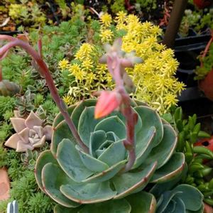 七福神に花芽~ 足元には子株がいっぱい 独立させようか悩み中