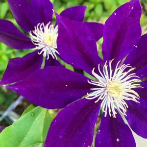 💠クレマチス💠 🧚♀️はやて🧚♀️ビエネッタ🧚♀️ 大きなビロードのような濃い紫色のはやて🧚♀️白万重の枝変わりで出来たビエネッタ🧚♀️ ビエネッタの蕊が紫なので、一緒のトレリスになりました。ビエネッタも隣のトレリスに誘引してあるのですが、つるの先を求めて 隣のはやてまで行きつきました😆💕 マイガーデン 🏷蕊愛マニア 🏷クレマチス♬ 🏷おしゃれな土曜日♪ 🏷青い花とその葉を写そう!2022 🏷ファンタスティックブルー 🏷美しく青きドヨウ 🏷青い春の花マニア 🏷ブルーのときめき❣️ に参加させていただきます💕