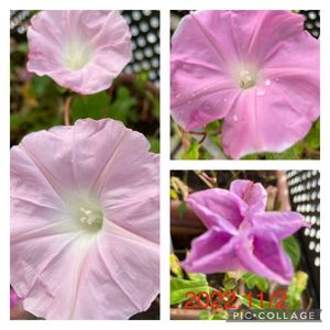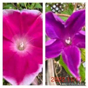 2022.11/2のあさがおといいたいけど、11/1に咲いたあさがお😳昨日の夜に撮影したあさがおがまだ咲いてる😳今日のあさがおはまだ開き途中。。今日は水曜日。