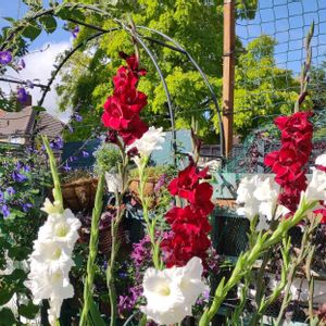 青紫の花しか植えてないはずの場所に紅白のグラジオラス。 この色を植えたのも覚えてないけどとても豪華です🤗 他の場所にあるグラジオラスは毎年のごとく、葉だけで花が咲かないので秋になったら掘り起こしてみようの思います。 植物と会話するのはとても難しい😅