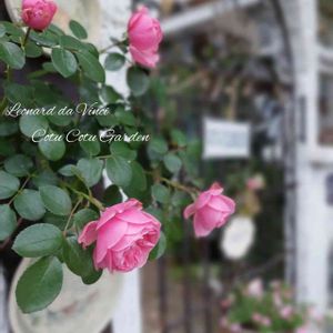 ラ・フランスとブラン・ピエール・ロンサール ヘッダーpic板壁の色をブルークレーにイノベーションしました。