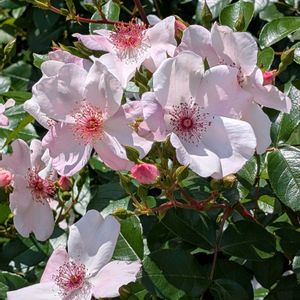 バラが色々咲いてきました ꕤ*.゚ ①② ピンクサクリーナ 赤いシベと 一重咲きがなんとも愛らしい子 これで花持ちが良ければなぁ ③④ つるバラ ロココ 午前と午後のお顔です ほんのりアプリコット色 良い香りです˖ ࣪⊹ ⑤ 名無しミニバラ 私にとってのファーストローズ🌹 20年以上の古株です 🏷️金曜ローズショー 参加します
