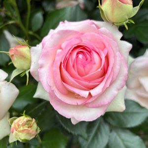 ジュリア 一昨日投稿の子咲きました🥰 ピンクサクリーナ ハート🩷の花びら可愛いよ 教えてください🙏 薔薇の剪定ですが ジュビリーセレブレーションの蕾が15個くらいあるのですが、咲かせても大丈夫ですか? 咲かせないでカットした方が良いですか?