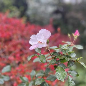 庭の薔薇たち〜 紅葉した灯台躑躅(どうだんつつじ)をバックに✨✨