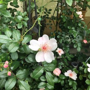 28番目〜🌹🌹 ピンクサクリーナさん🌸🌸🌸 この子は〜濃くて良かったんだよ〜(lll-ω-) なぜ、薄めなのだろうかΣ( ̄ロ ̄lll) 桜みたいなお花なので、ピンクサクリーナさんなのですが、日本ではなく、フランス🇫🇷メイアンのバラさんです⸜( ´ ꒳ ` )⸝ 今回地植えから掘り上げて鉢植えに(*´艸`*) 奥のパーゴラにアンダーザローズさんとの共演を夢見ておいてみました୧⃛(๑⃙⃘⁼̴̀꒳⁼̴́๑⃙⃘)୨⃛ が、蕾同士が、と、お、い꒰꒪д꒪|||꒱ガーン 先進んだらどうなるかな?