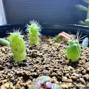 種からのサボテンの赤ちゃん。まだ種類はわからない。パヤパヤしてて可愛いね。