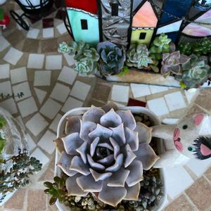 年に一回の🏷七福神の日も日付が変わってしまいましてが参加で…😅 他のエケベリアさん達よりお水が好きなのか、お水やりを控え過ぎると枯れ葉があっという間に増えちゃう😵 真夏のお水やりは怖くて仕方ありません💦
