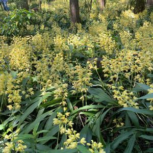 ガンゼキラン 岩石蘭 ラン科 またまたガンゼキランです❤️ 先日picのは牧野植物園5/14の一般公開してない場所のでした。こちらは佐川町牧野公園、寒い所です💜 名前の由来の根元の茎は見当たらず、花が、びっしりと満開でした💚 こちらは杉の木の下に植えてありました💚 こちらも杉の枝落ちなどボランティアさんのおかげで、見ることができます❤️