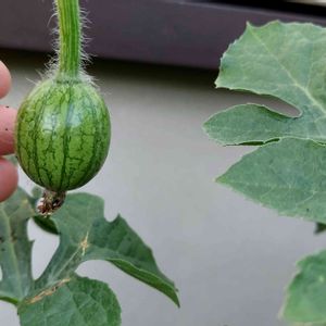 🏷ナツ☀ナツ☀ナツ Part2😉 🍉ピノガール🍉 20cmほどの ホントに小さなスイカ🍉を収穫😋 お味は めちゃくちゃ甘かったです🙌