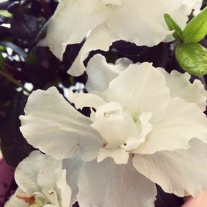 白のアザレアこの子も2年前地植えして現在もちょくちょく咲いてくれます。 ただアジサイの近くに植えすぎてしまった事を反省💦