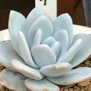こんばんは〜〜 今日も暑くてヘロヘロな ニコちゃん大王でございますよ〜〜‼️ 暑くて暑くて、ひたすら水分補給で 今日もおなかは たっぷんたぷんだよ〜〜💦 今日の投稿は、カクトロコ産の 霜の朝さんだよ〜〜ん‼️ 「朝」と書いて「あした」 って読むらしい‼️ picは中心だけをパシャリしてるから 大きくは見えないかもしれないけど 結構な大きさがあるんだよ〜〜‼️ 草丈は10センチオーバーだから ニコちゃん大王と一緒で、頭が重たいから ちょっと前に倒れそうな感じに なってるよ〜〜‼️ この子も、肉厚で、青白くて ニコちゃん大王のお気に入りだよ‼️ (まぁ、家にいる多肉は、みんな お気に入りなんだけどね‼️) 春前は、もっと締まってたんだけど 春から水あげしてるから、少し開き気味 でも、葉先はほんのりピンクで 全体はきれいな色白さんで 美し〜いっでも感じだよ〜〜❣️ ニコちゃん大王、 相当な親バカだからね〜💦 まじ、かわいいでしょ〜💕💕💕 今日は土曜日 まだまだ、これから 草花や多肉の発注とかあるから 今日はこの辺で、