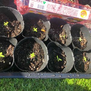 やっと 種まきした千日紅とジニアをポット上げしましたー💪🏻😅 お店に並んだしっかりした苗を見ると ちょっと凹むけど、さあ、☀️大きくなぁれ🌱