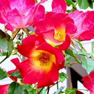 🌹カクテル🌹 世界バラ会議で選出され、殿堂入りした、赤のつるバラ 赤の中に黄色が入るグラデーションが、カクテルを思わせて美しい❣️ 長居公園バラ園にて 🌹花数・種類の多さに感動😄👀📸です 🏷️ 真っ赤な火曜日 の仲間に入れてね