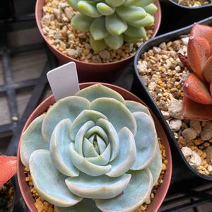 ジョセリンズジョイ ホームセンターにて5月初旬にお迎えしました🪴 付いてる札が100均のものと同じ。でもお値段は198円でした!100均多肉と同じ生産者さんなのかなー? 一度紅葉覚めたと思ったけど、最近また縁がピンクになって、形もお迎え時より締まってきていい感じ😆 どう変化してくれるのか楽しみです😊