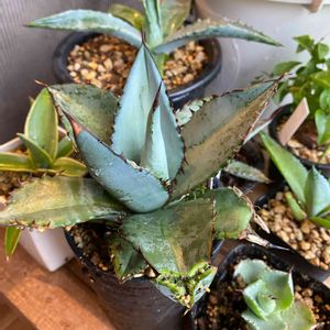 ロメオ 年始に多肉に力入れてるホームセンターにて、焦げ多肉で値引きされてたのでここぞとばかりにお迎えした子🪴 焦げた葉も入れ替わりしっかりしてきた😆 アガボイデス系は夏に弱い⁇ 蒸れないように気をつけよう⚠️