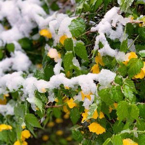 ヤマブキも、 この時期の雪❄️にびっくりしてるよ