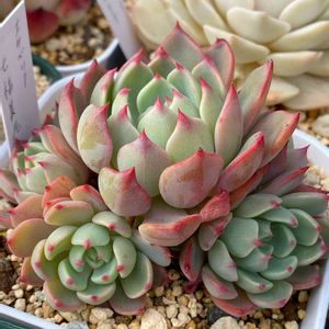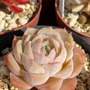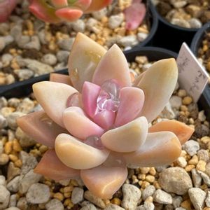 おはようございます☀ 昨日の夜の雨の影響か、朝から冷え込んで動きたくないです😅 この子もダイソーの子🪴 名無さんで、こちらで淡雪じゃないか?と教えていただきました😊 中心が染まってきて可愛くなってきました😆