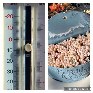 おはようございます☀ 予報−4℃ 温度計−3℃🌡 去年はマイナス3〜4℃の時は凍ったことなかったのに、今年は夜間のマイナス時間が長いのか、新聞紙、不織布3枚だと凍ってしまいました🥶 picの他にも葉挿しの小苗もいくつか… プチプチも追加せなあかんかな💦