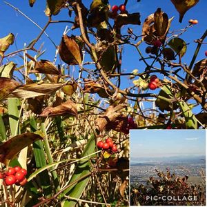 サンキライ(山帰来) ユリ科シオデ属 今日は 今年初の山散歩🚶 サンキライの茎は六角形に繋がってたりと面白い❣️ これはアーチを描いてる💞 赤い実が光って綺麗✨😍✨ 2019/1/14 北九州市 平尾台
