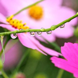雨上がりのコスモスに、雨粒が✨ コスモスの花茎は水滴を蓄えやすいですね〜💕 コメントを入れて投稿したはずなのに、なぜか何も書いていないことになってました😭 🏷️も💦 🏷️0の付く日は雨粒の日